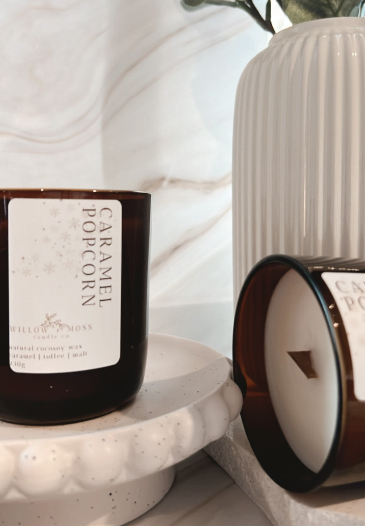 The ultimate sweet movie treat! Hot, buttery popcorn drizzled with gooey caramel. Sugared notes of toffee, vanilla and cinnamon round out this childhood favourite.