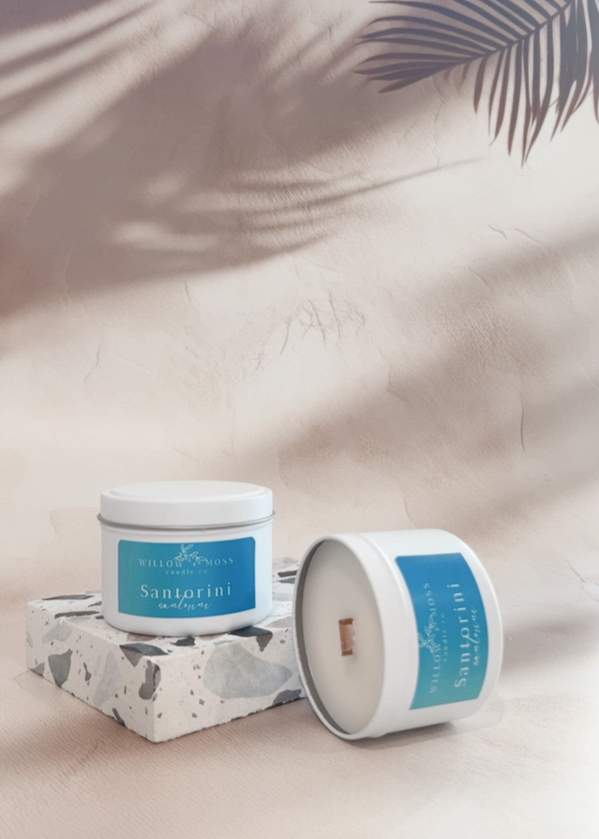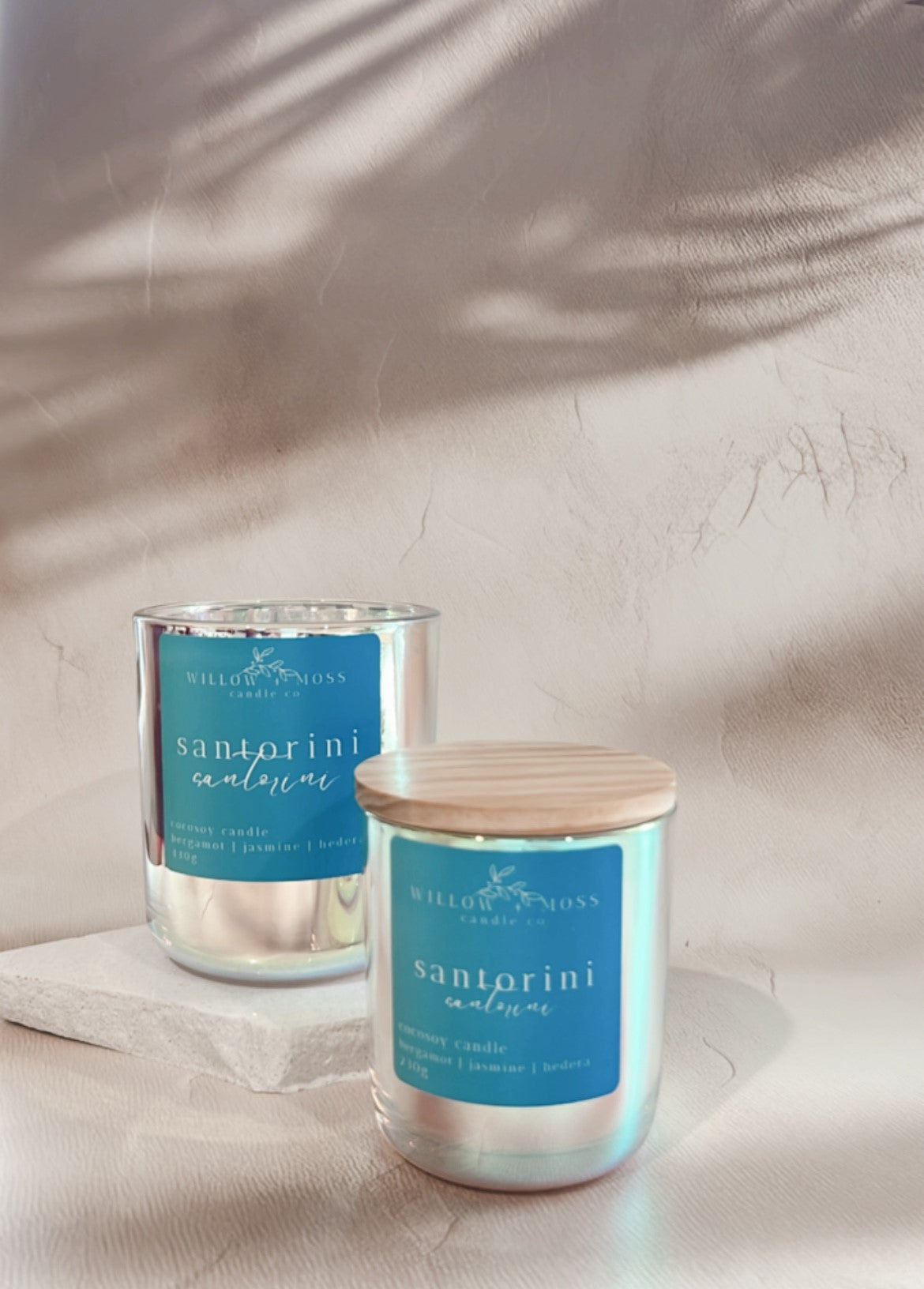 Take a trip to Santorini from home with the scent of sweet blue jasmine draped in cooling ivy.