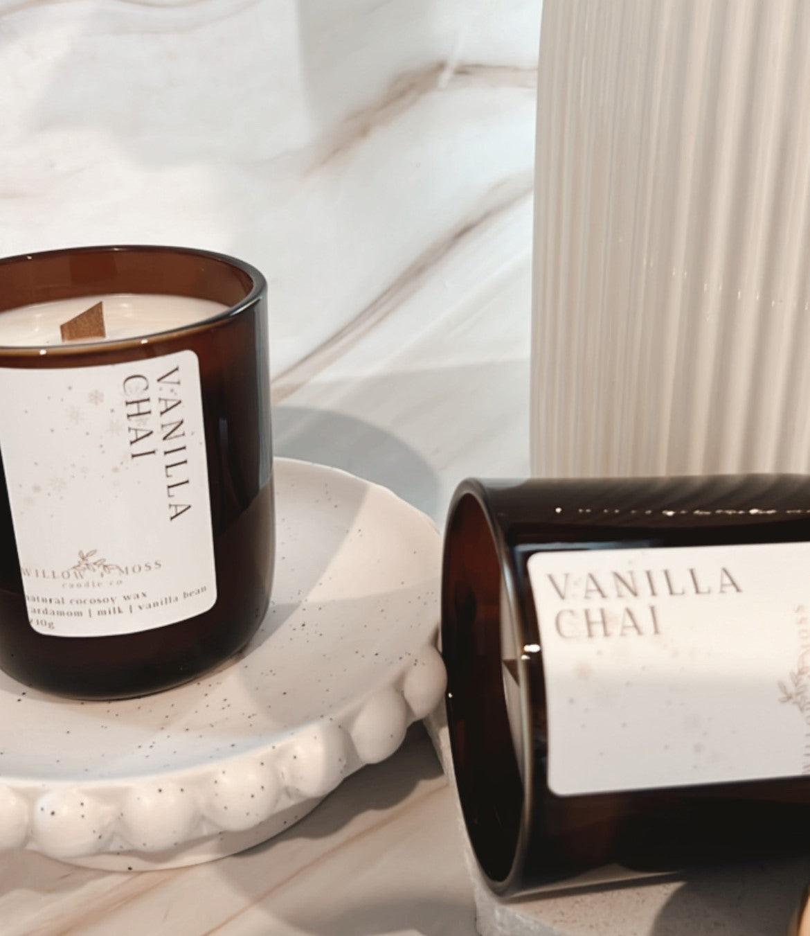 Treat yourself to a delicious vanilla chai latte generously sprinkled with ground cinnamon. Warm spices are balanced with a sweet and creamy base.