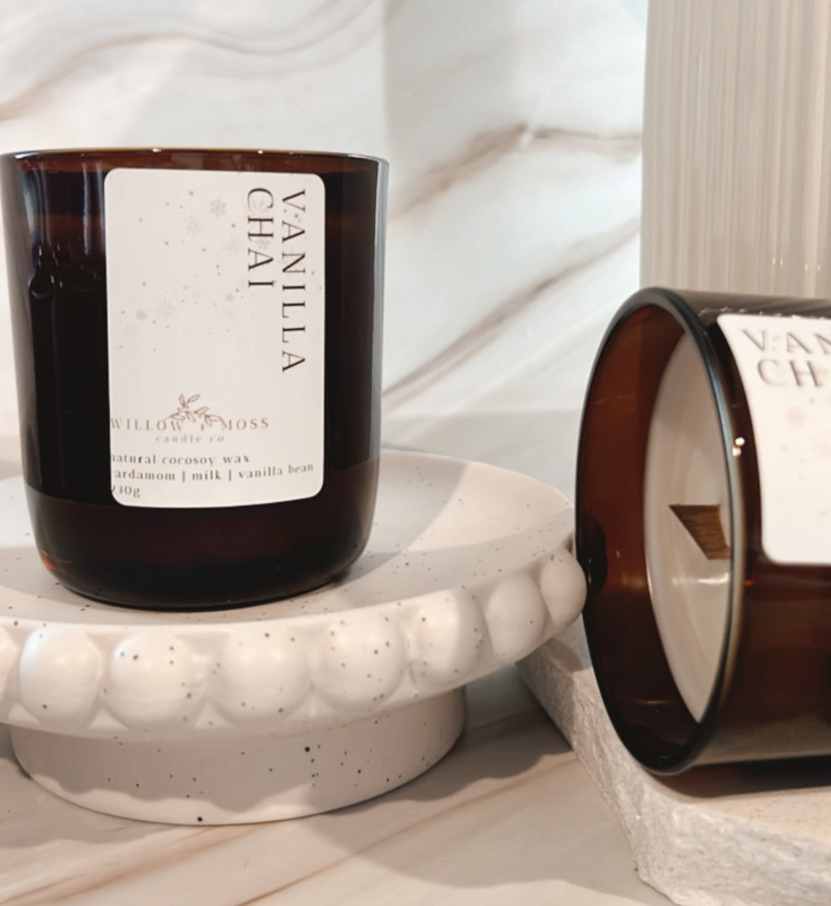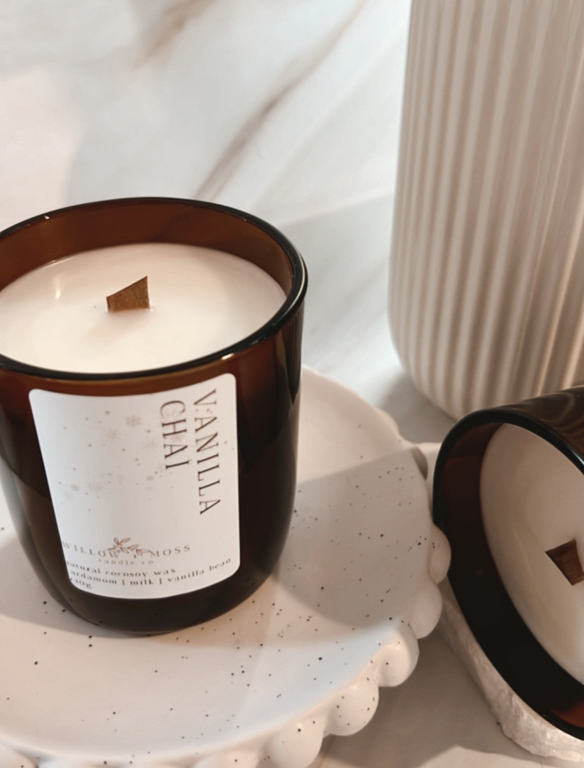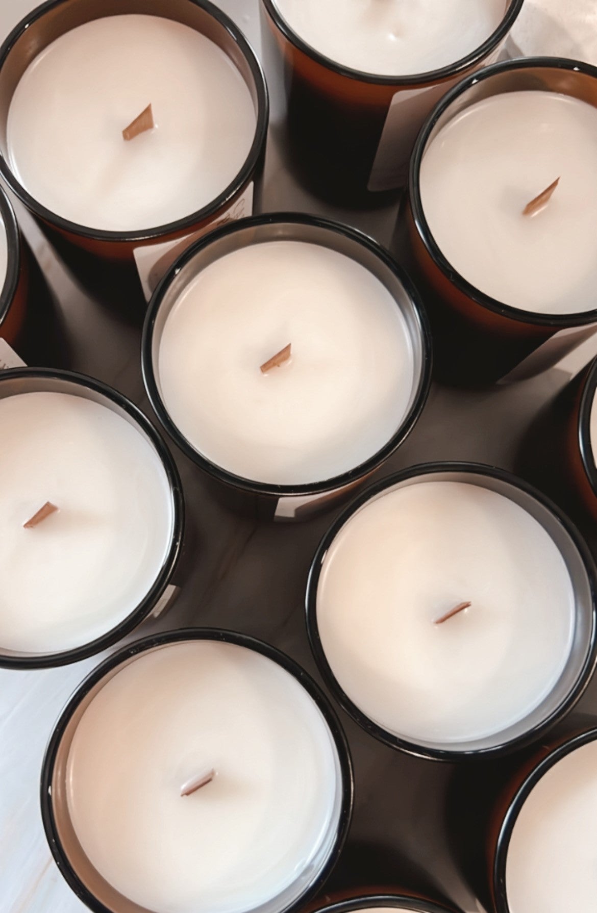 Part of the Winter trio - 230g woodwick candle nestled in a warming amber jar with a pine lid.